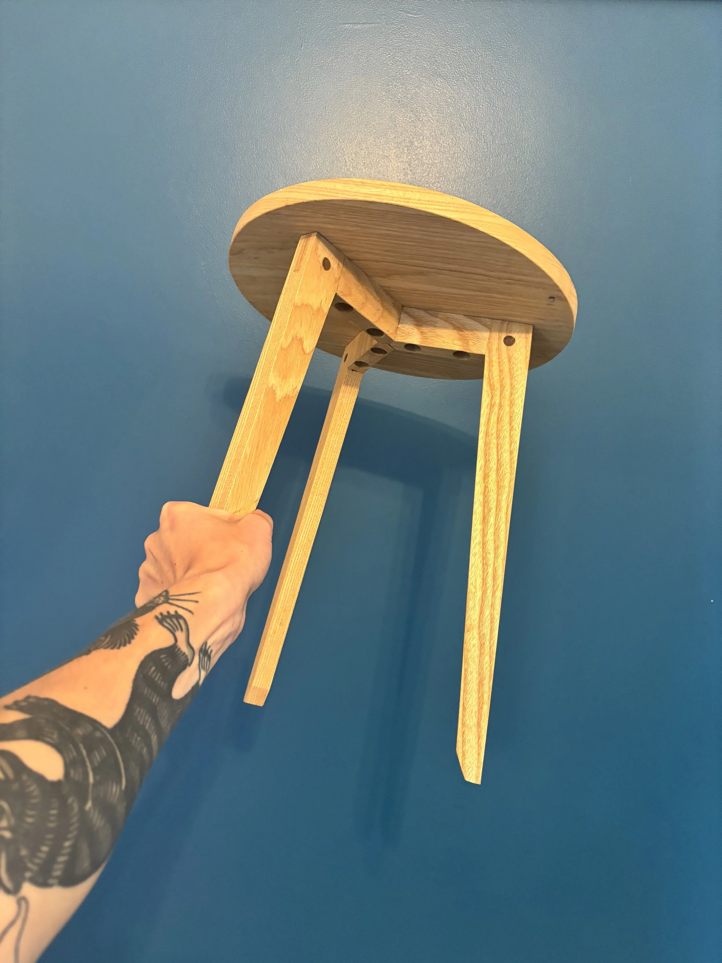 This was one of the first pieces I ever designed and made as a prototype and inspired me to push on with new designs. Detailing tapered leg sections and contrasting solid walnut pegs.